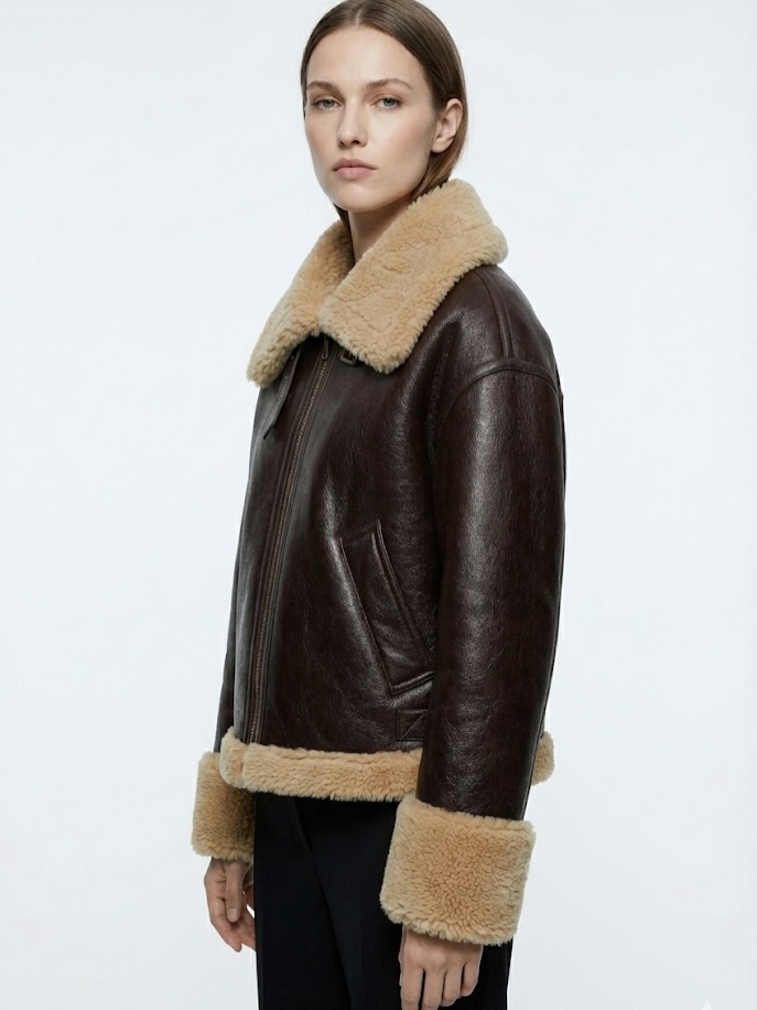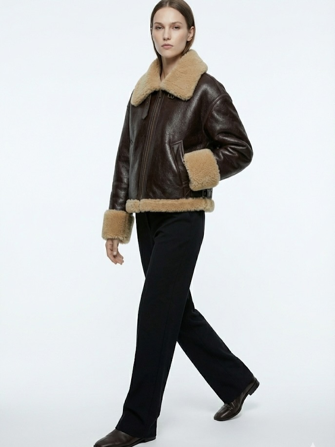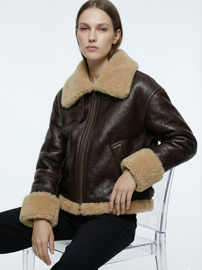 The Hestovrviio Shearling Aviator Jacket is a winter essential designed for women who want warmth, structure, and timeless style during cold seasons in Amman and across Jordan. Inspired by classic aviator silhouettes, this jacket blends a vintage aesthetic with modern comfort, making it ideal for everyday wear, travel, and winter outings.
