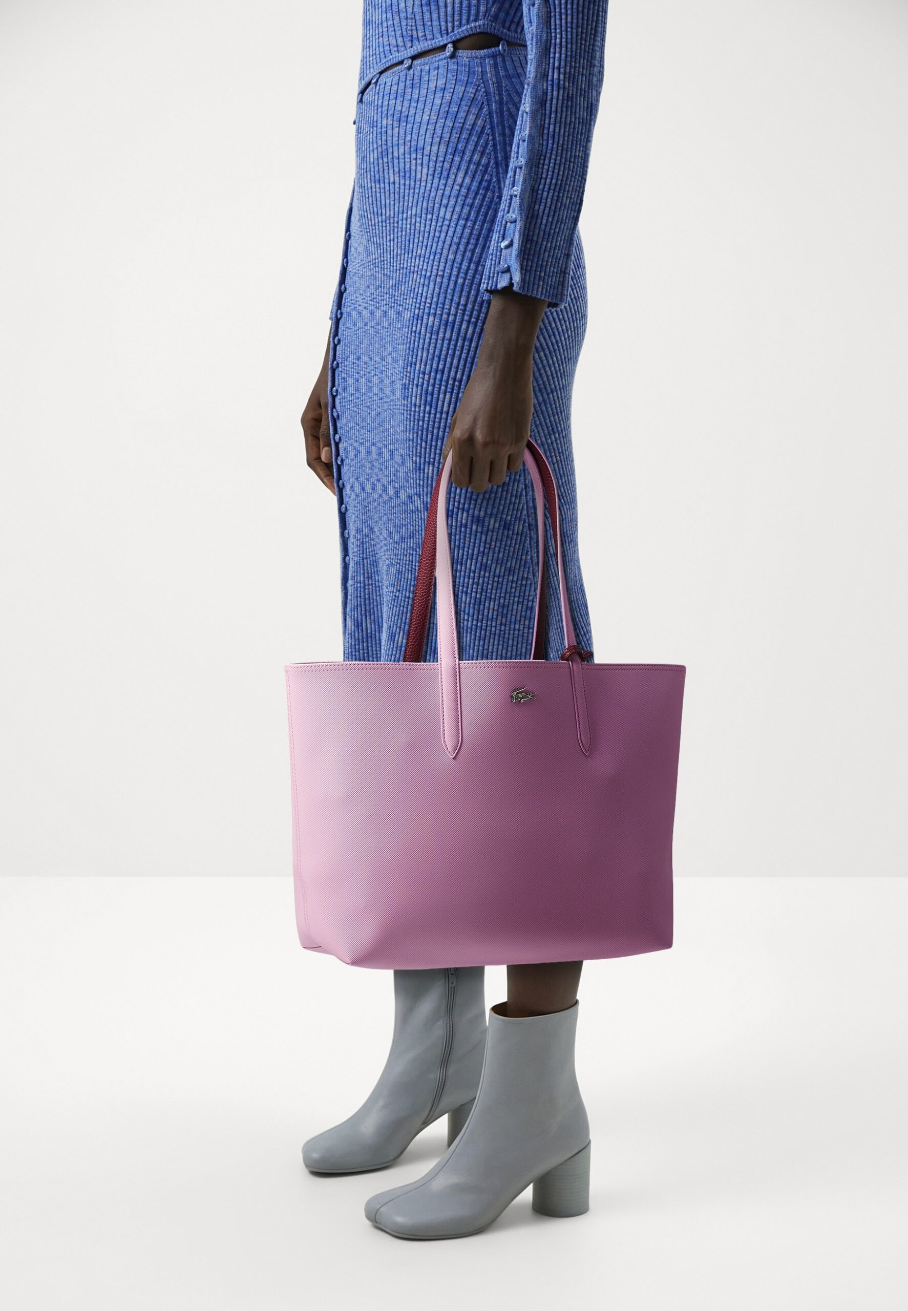 Upgrade your everyday look with the Anna Reversible Tote with Pouch by Lacoste, a perfect blend of elegance, practicality, and timeless design. This versatile tote features a reversible two-tone style, giving you two looks in one, along with a removable zipped pouch to keep your essentials organized. Designed with a textured grained finish on one side and an embossed piqué effect on the other — inspired by Lacoste’s iconic polo heritage — it’s completed with the signature metal crocodile logo for a refined touch.