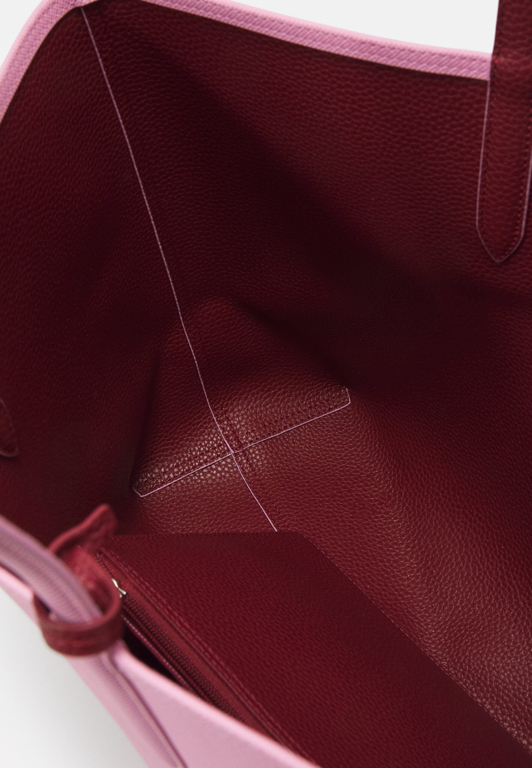 - Design: Reversible tote with top handles + inside zip-pouch