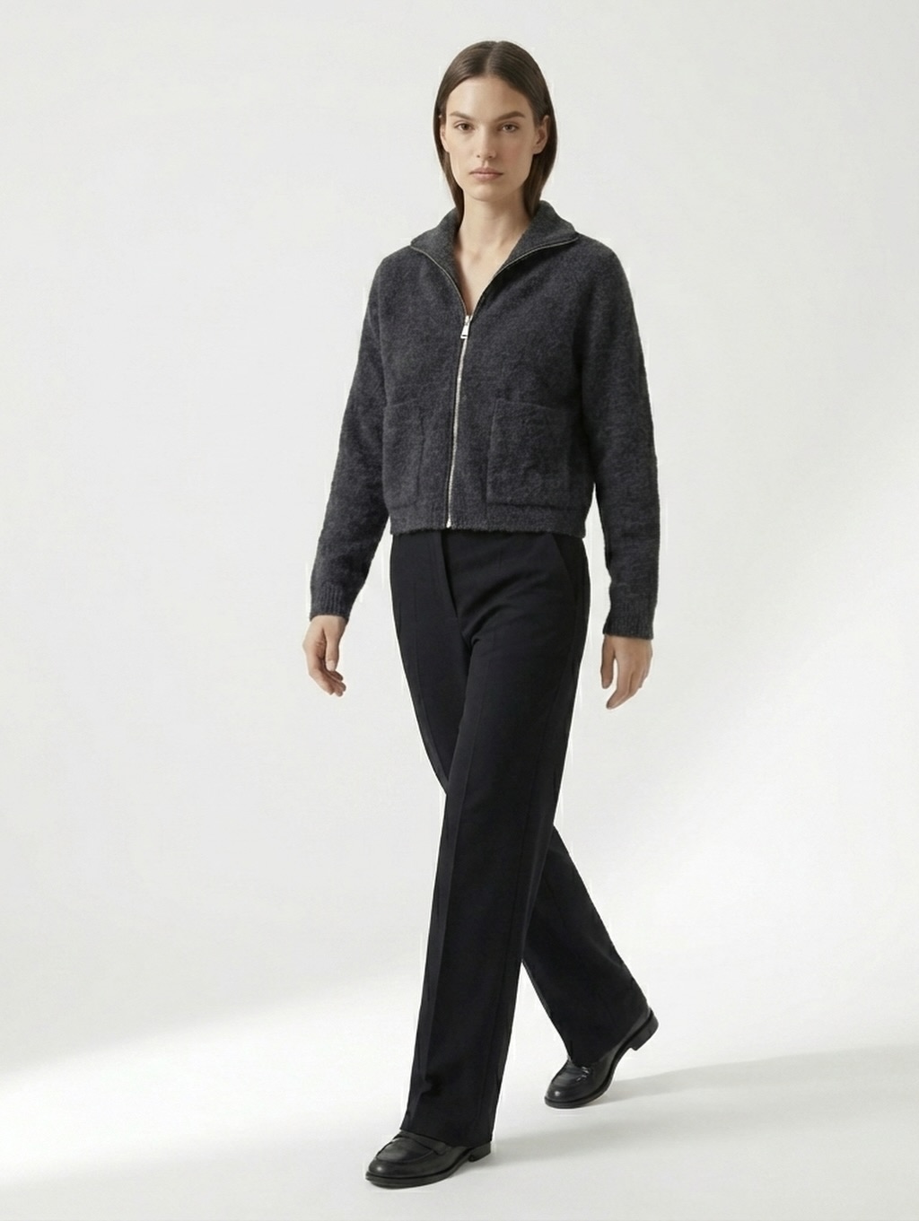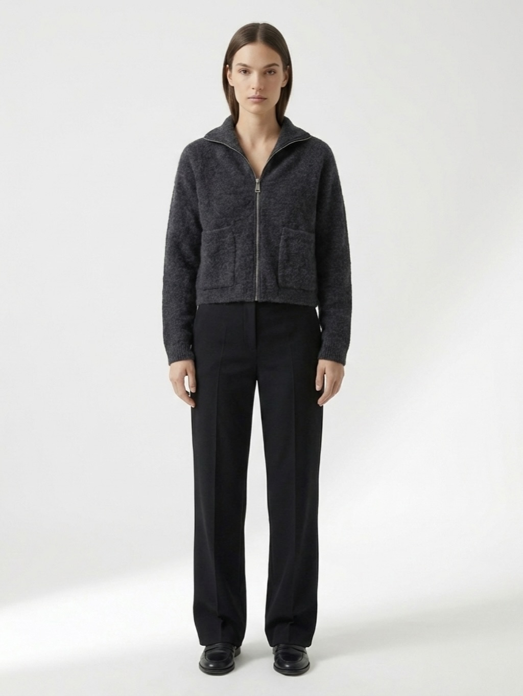 Refresh your winter essentials with this ZARA Women’s Cropped Zip-Up Sweater, designed for modern layering and everyday comfort. Crafted from a soft fuzzy wool blend, this sweater features a high collar, front zip closure, and a clean cropped silhouette that delivers warmth without heaviness.