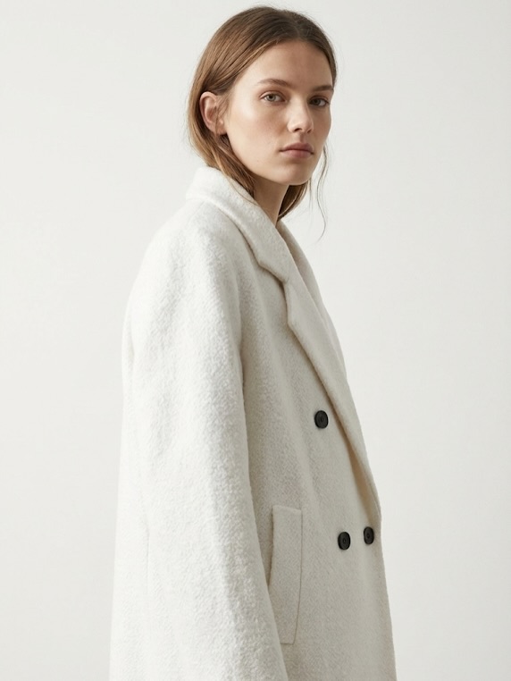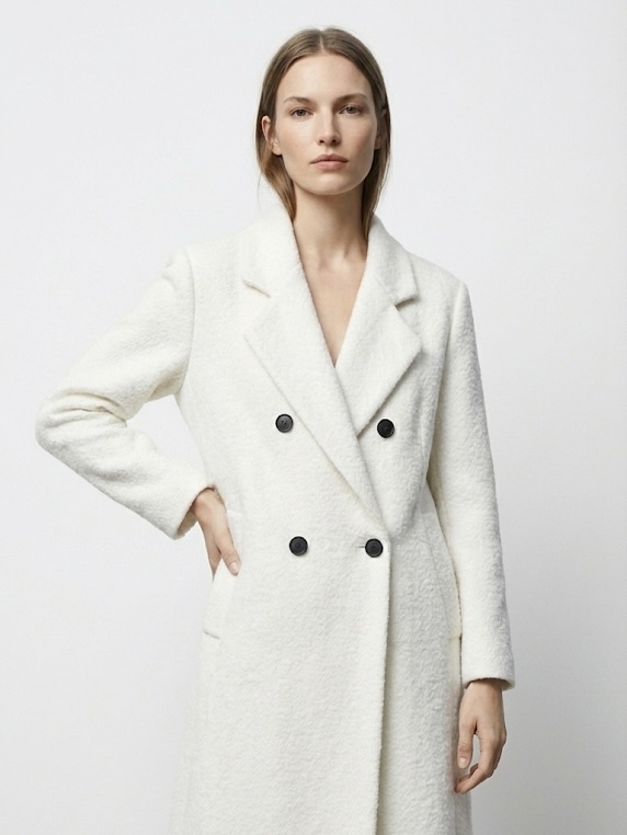 Elevate your winter wardrobe with this ZARA Women’s White Double-Breasted Wool Coat, designed for timeless elegance and modern sophistication. Crafted from a premium wool blend, this coat features a structured silhouette with bold lapels, double-breasted button closure, and clean minimalist tailoring that flatters effortlessly.